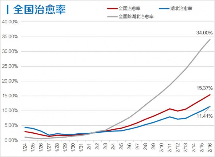 随着治疗方式和药物的优化改善,全国治愈率短期内从13日的10.53%攀升至16日的15.37%。