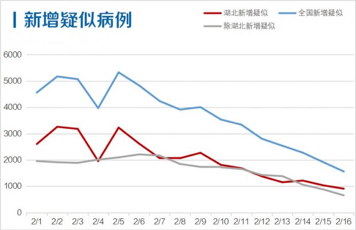 目前全国疑似病例数量连续8日均处于下降趋势,同时新增疑似病例也连续一周下降,表明当前疫情严防严控措施科学有效,有望缓解医护人员压力,并进一步推动企业有序复工复产。