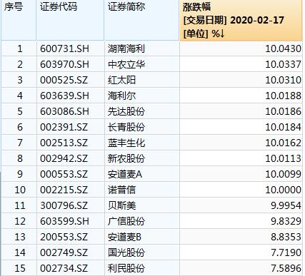 2月17日,纳入申万农药行业的26只A股上市公司,当日平均涨幅达到7.93%,11只个股报收涨停。