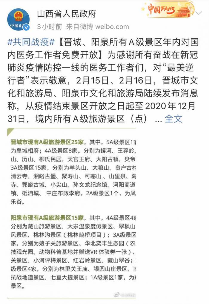 景区向医护免费开放,2.18第三批官宣汇总丨天使归来,春暖花开!