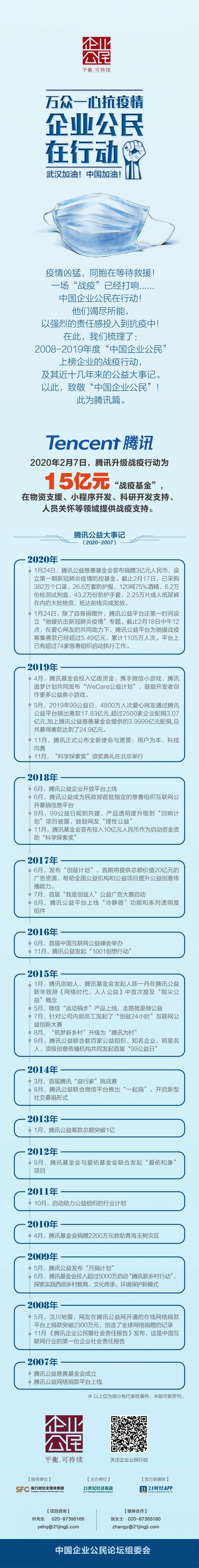15亿元“战疫基金”!腾讯升级战“疫”行动丨企业公民在行动