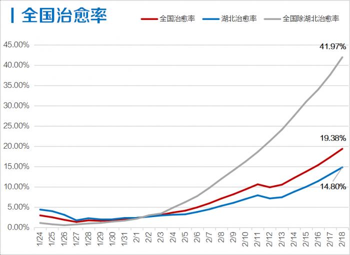 全国各地出院率均出现比较积极的信号,全国除湖北地区出院率首次超过40%;湖北连续4日出院率超10%,并持续加速上升。