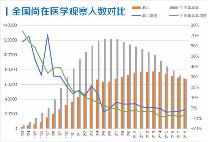 值得一提的是,连续数日湖北医学观察人数下降,一改过去两周抬升的趋势。