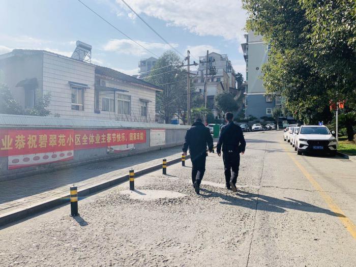 2月19日下午3时许,在自己挂点的碧翠苑小区内道路上,戴隆中在巡查时远远望见了一位小区居民。这位居民身着黑衣黑裤,戴着黑帽,坐在小区上层至低区的步行台阶上,身旁一侧有墙壁遮挡——走在上层道路时,很容易忽略这个几近死角的小“黑点”。