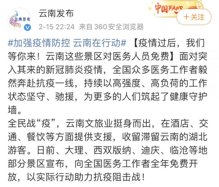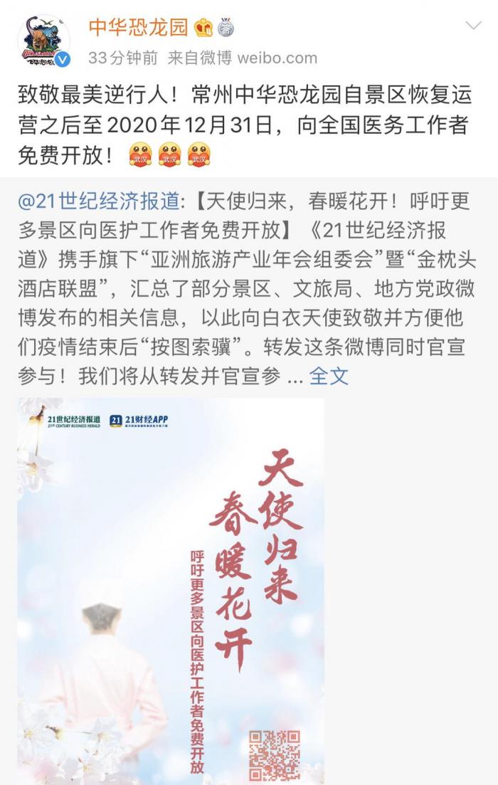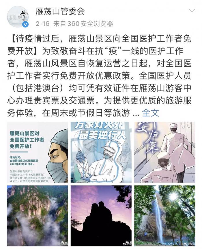 景区向医护免费开放,2.19第四批官宣汇总丨天使归来,春暖花开!