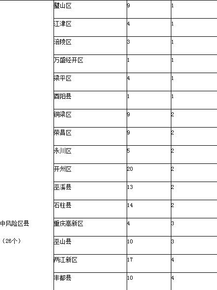 《分区防控方案》提出:按照当前重庆市的疫情实际情况和发展态势,综合考虑人口流动等因素,以区县为单元,分为低风险、中风险、高风险区县。