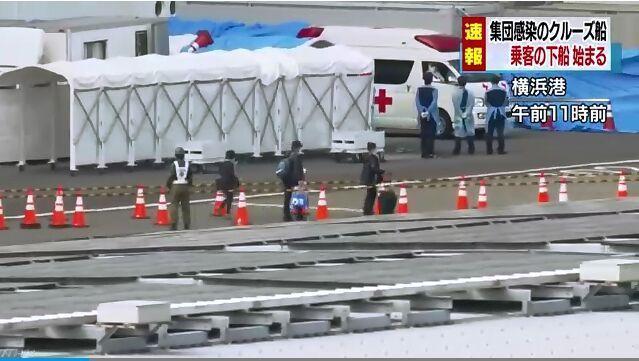 据媒体报道,“钻石公主号”最先走出两名日本游客,之后其他乘客也陆续下船。同时,横滨港的码头上已经停了十多辆巴士,这些巴士将搭载下船乘客赴主要的车站等地。