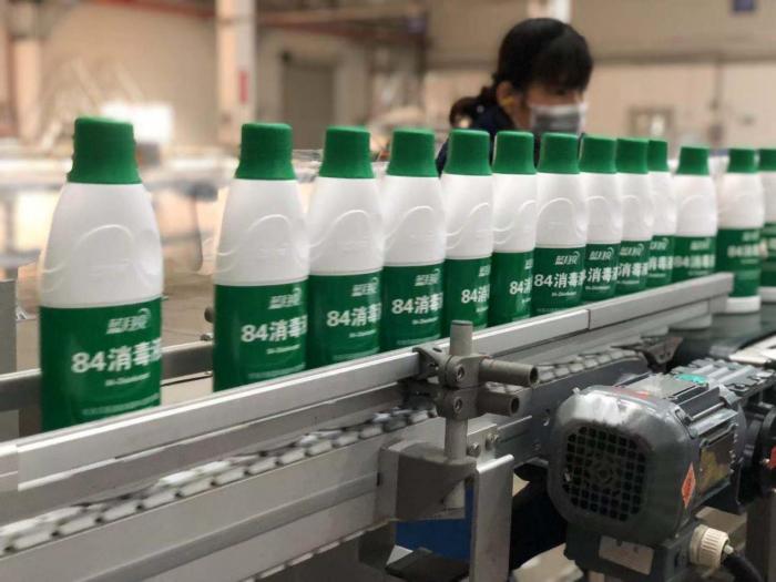 随着疫情向全国扩散,市场上消毒类产品需求急剧增长,在许多地区都出现供不应求的情况。为保障生产、加大物资供应,蓝月亮协调各方资源,安排增产计划。1月26日大年初二,全国各大生产基地近200名员工放弃假期回归工作岗位,加班加点生产民众亟需的抑菌洗手液、84消毒液、衣物消毒液等消毒类产品,并通过供应链及物流体系运送至湖北等地,为一线医护人员和人民大众提供消毒物资支持。