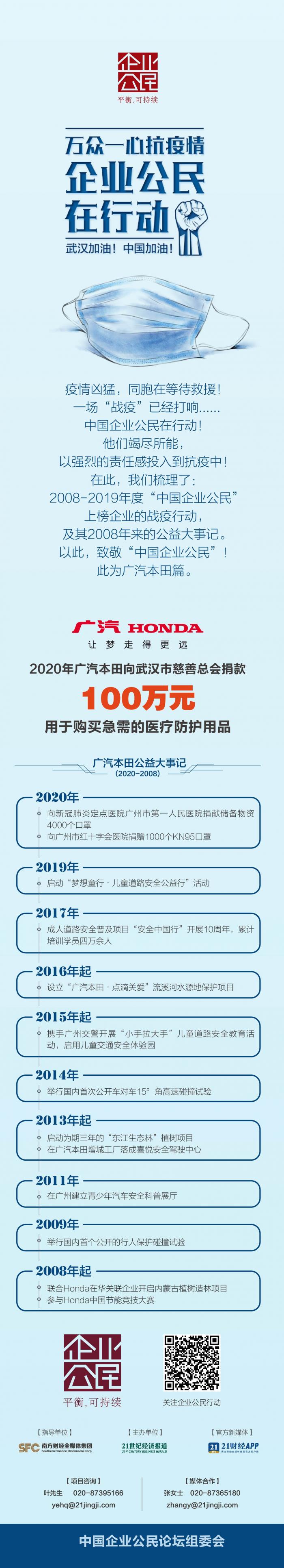 广汽本田捐款100万元支援武汉战“疫”丨企业公民在行动