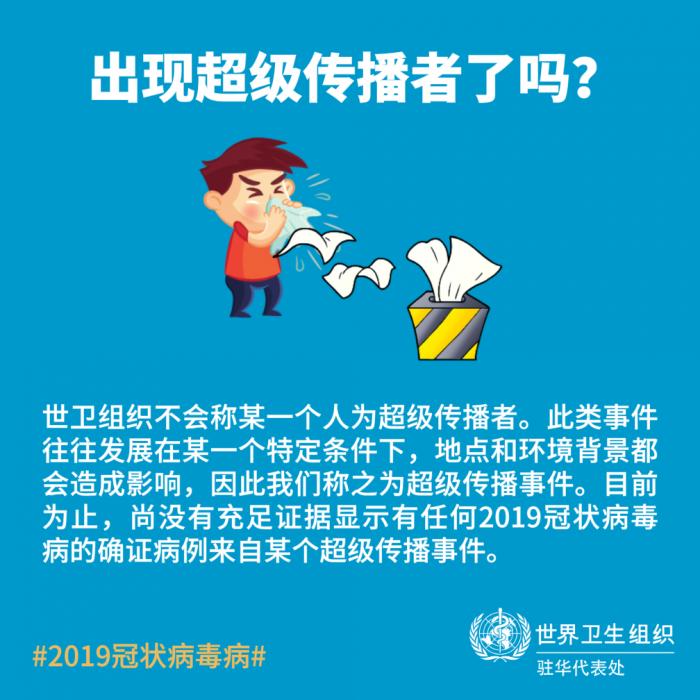 是否已经出现超级传播者?疫情拐点何时到来?买东西付现金会导致病毒感染吗?戴手套比戴口罩重要吗?确诊孕妇生下的宝宝也会被感染吗?吃果蔬和肉蛋会感染病毒吗?以下是世界卫生组织的最新答疑: