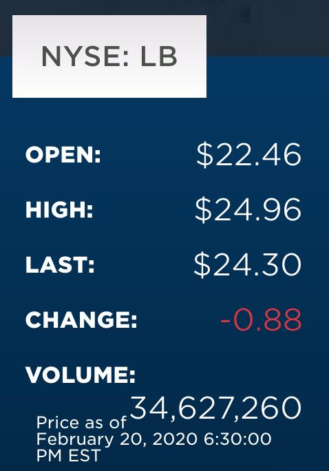 受此次交易消息影响,L Brands股价也上涨为近半年来新高,周四收盘23.42美元,市值64.8亿美元。