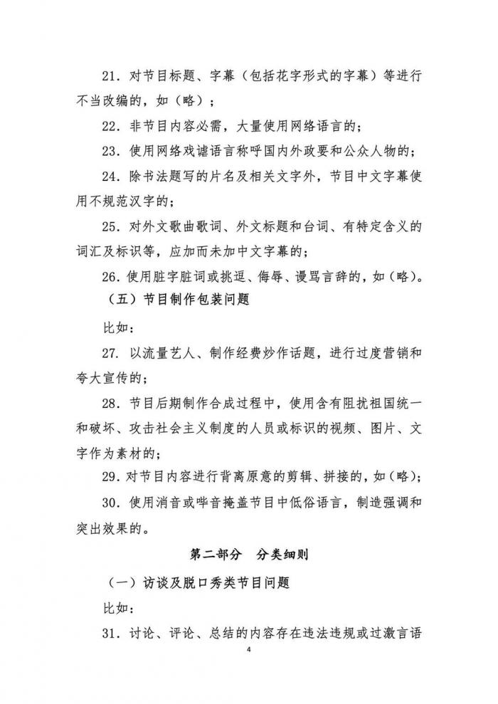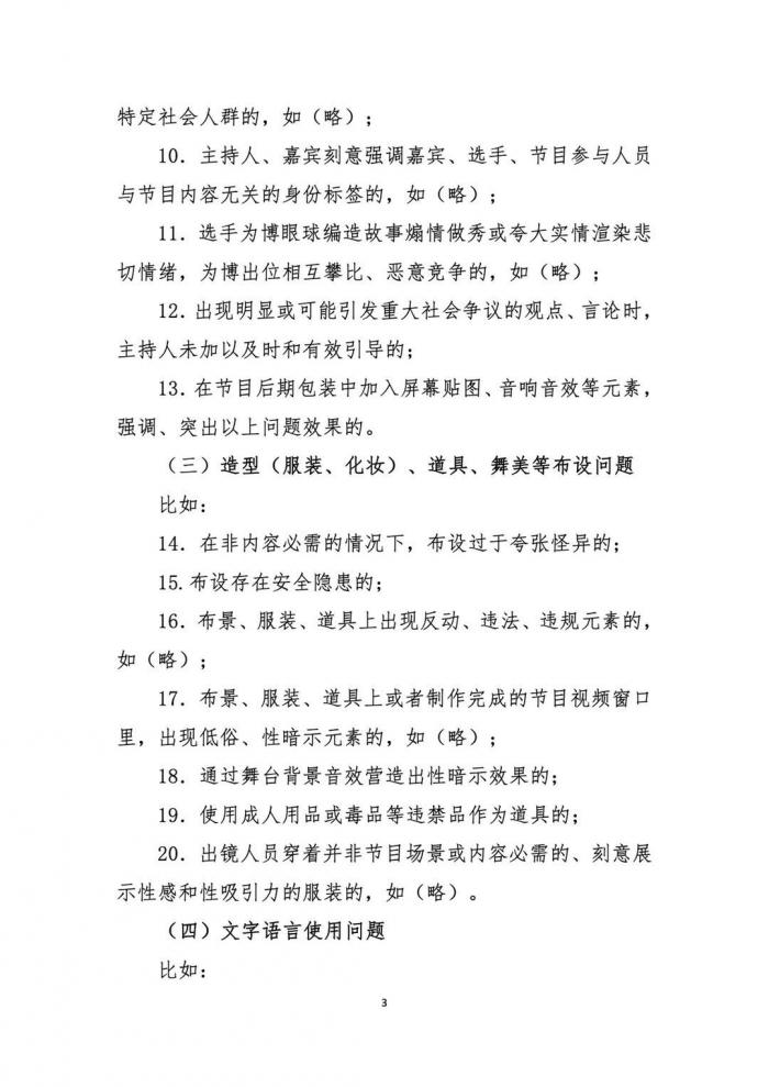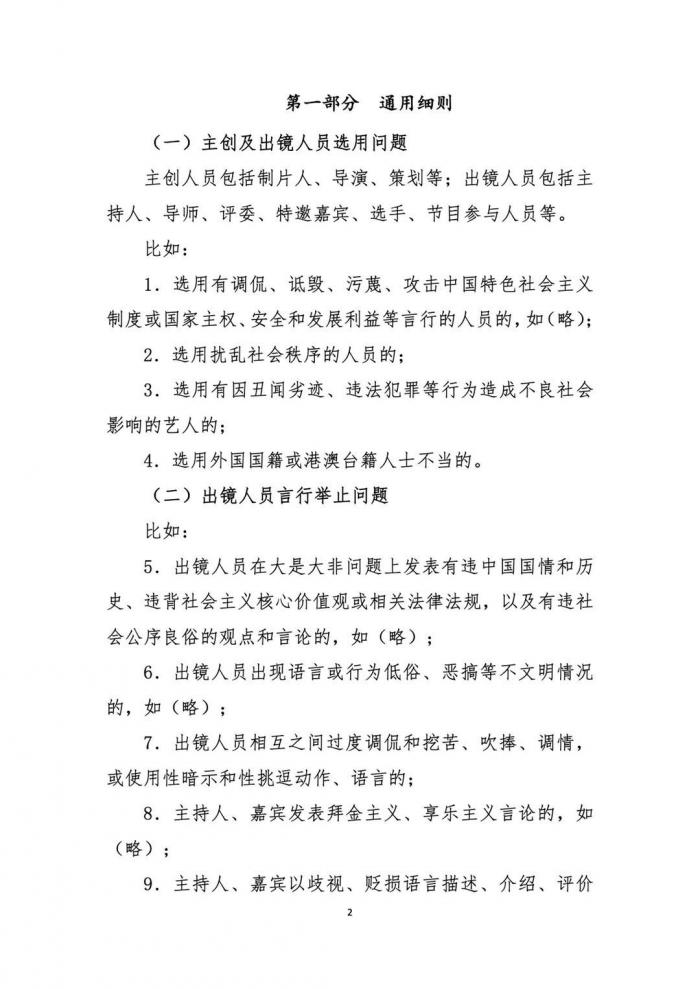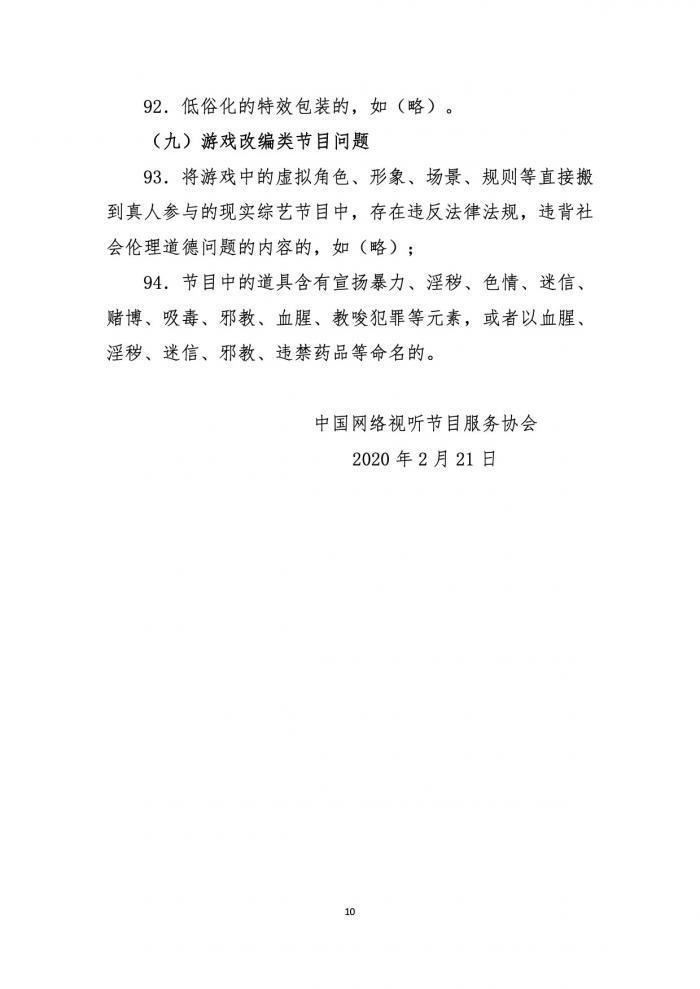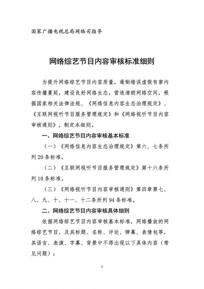 2月21日,中国网络视听节目服务协会发布《网络综艺节目内容审核标准细则》。其表示,该文件是按照国家广播电视总局工作部署,在总局网络视听节目管理司指导下,由中国网络视听节目服务协会联合央视网、芒果TV、腾讯视频、优酷、爱奇艺、搜狐、哔哩哔哩、西瓜视频、快手、秒拍等视听节目网站共同制订。