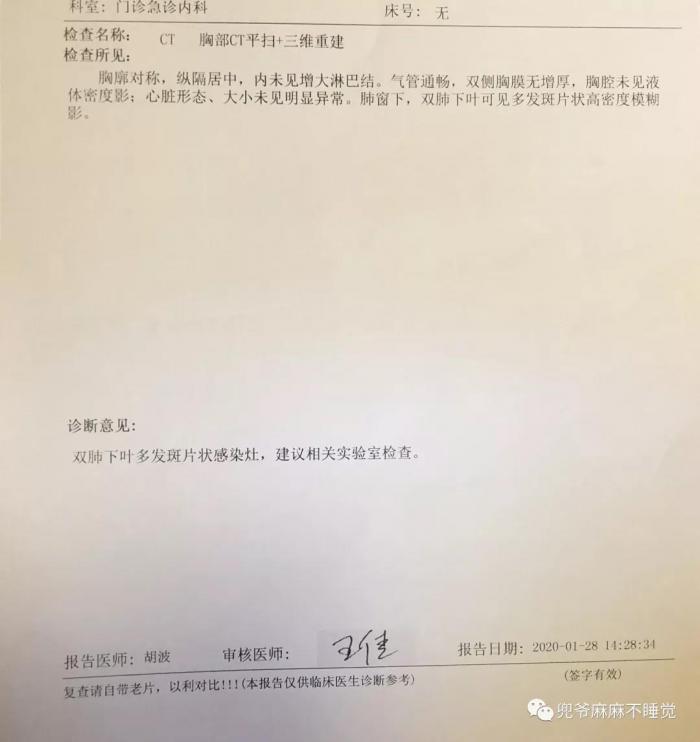 第二天,CT的结果出来,双肺下叶多发斑片状感染灶