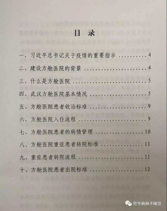 患者手册里讲解了方舱医院的作用和功能流程,这是目录,其他内页感兴趣的可以在公号后台回复“患者手册”。