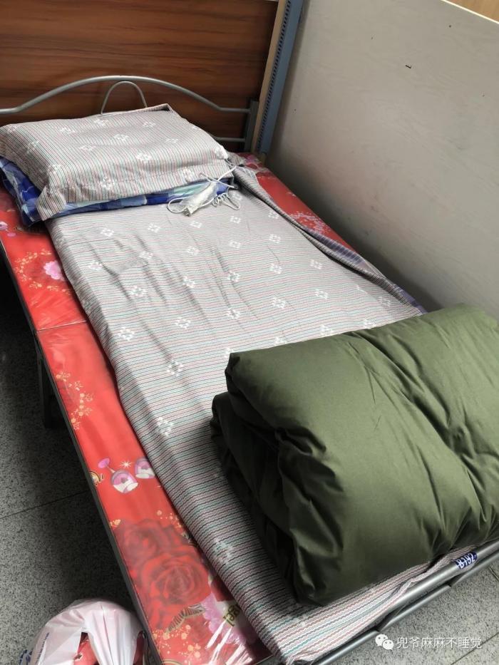 我登记完后进去跟着护士来到了我的床位,床上有电热毯,枕头,一床薄被子,一床厚被子。