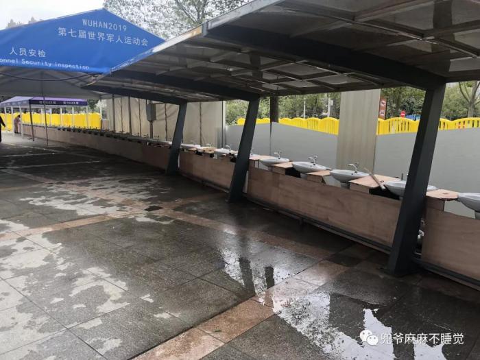 整个体育馆被分成了AB两个大区,每个大区又分为了一片片小的隔离段,男女分开。