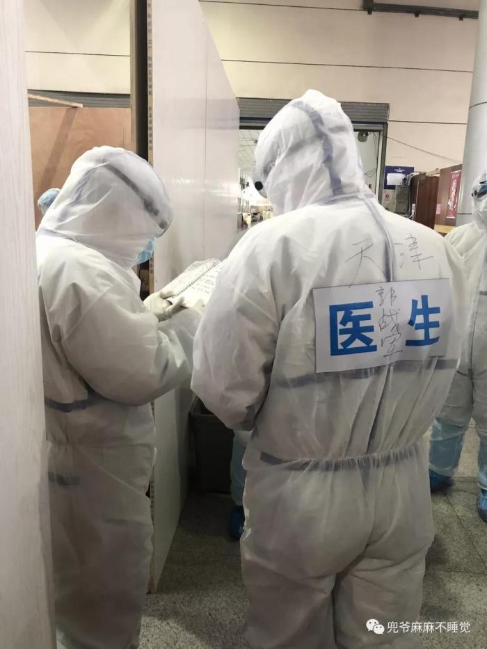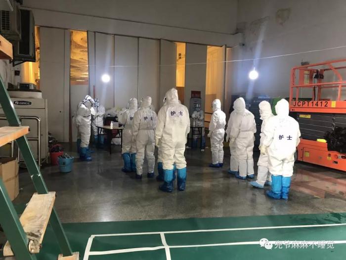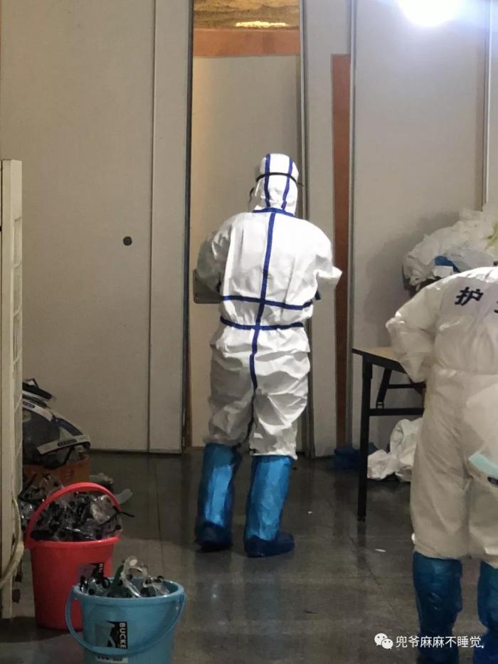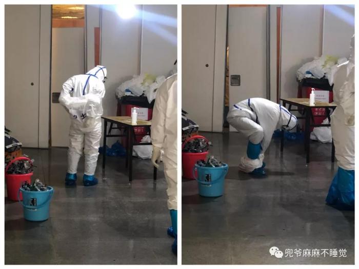 一个天津北辰医院来的护士跟我介绍,她们每次进来就不吃东西不喝水不上厕所了,虽然是6小时一班,但是前后穿脱衣服很费时,往往可能在交班点后2小时才能回到酒店,然后才能吃饭,再将里面穿的医用防护服清洗消毒,下次班再穿。