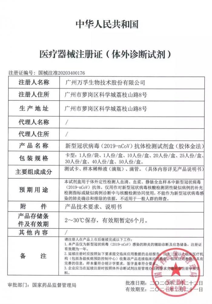据万孚生物透露,本次率先获得注册证的新型冠状病毒(2019-nCoV)抗体检测试剂盒(胶体金法),用于体外定性检测人血清、血浆、全血样本中新型冠状病毒(2019-nCoV)IgM/IgG抗体,操作简单,15分钟即可肉眼判读结果,可为新冠肺炎疑似患者提供快速检测手段。