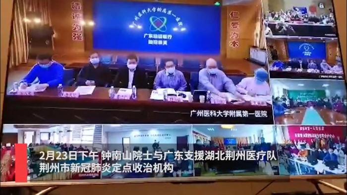 2月23日下午,钟南山院士与广东支援湖北荆州医疗队、荆州市新冠肺炎定点收治机构首次以远程会诊的形式,讨论“战法”。