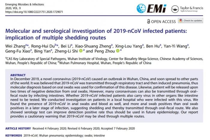 发表于国际期刊《新发微生物与感染》2020年第九期的相关文章