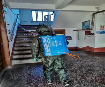 李作营为办公室消毒 雪花啤酒供图