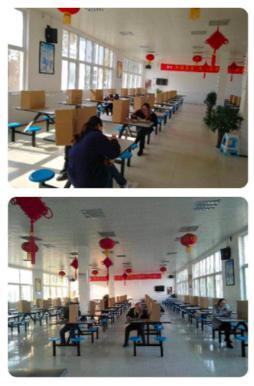 在员工食堂,该公司采取了“硬核”防控措施,定时消毒。就餐人员错峰吃饭,餐桌间隔1.5米,打饭间隔一米。各工厂也纷纷手工打造“格子间”、“雪花牌”餐桌,最大限度的保障员工用餐安全。