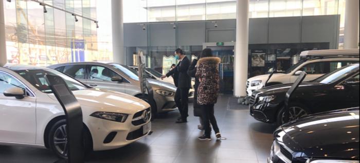 相对于上述经销商的“门前冷落车马稀”,奔驰经销商店内业务相对繁忙。记者到达时店内已经有十余位消费者在看车或咨询业务。