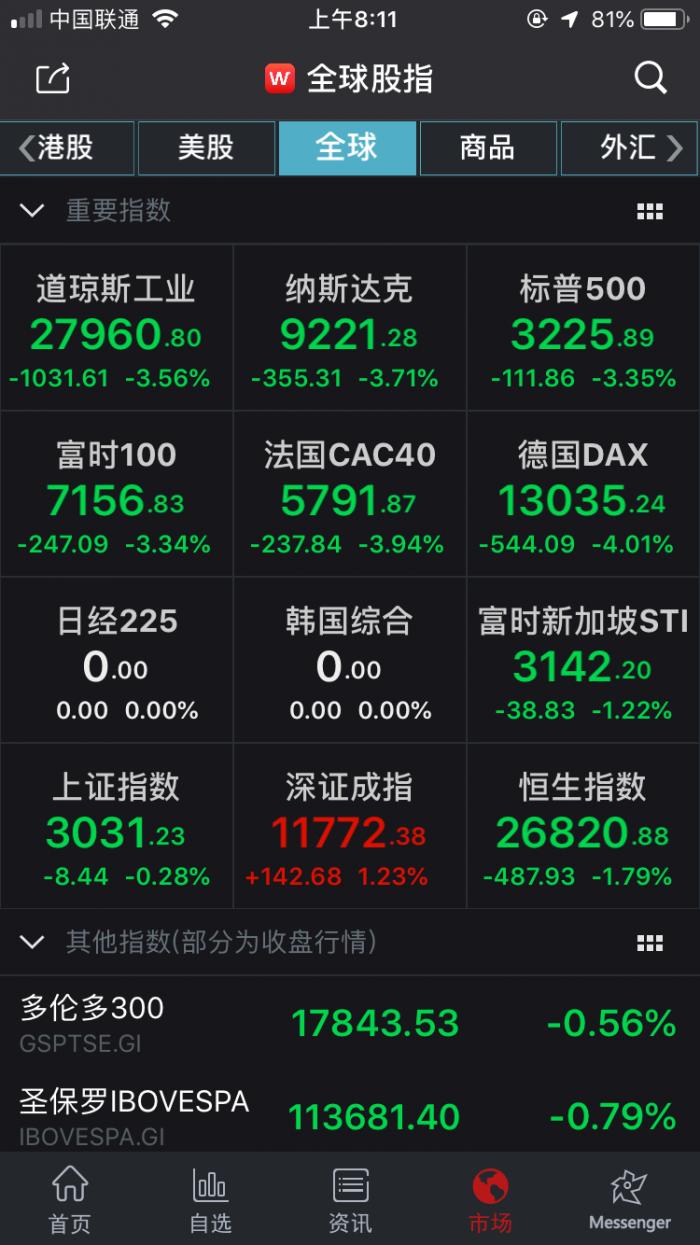 受疫情全球蔓延的影响,继昨日亚太股市大幅下挫之后,欧美股市晚上更是恐慌性跳水!