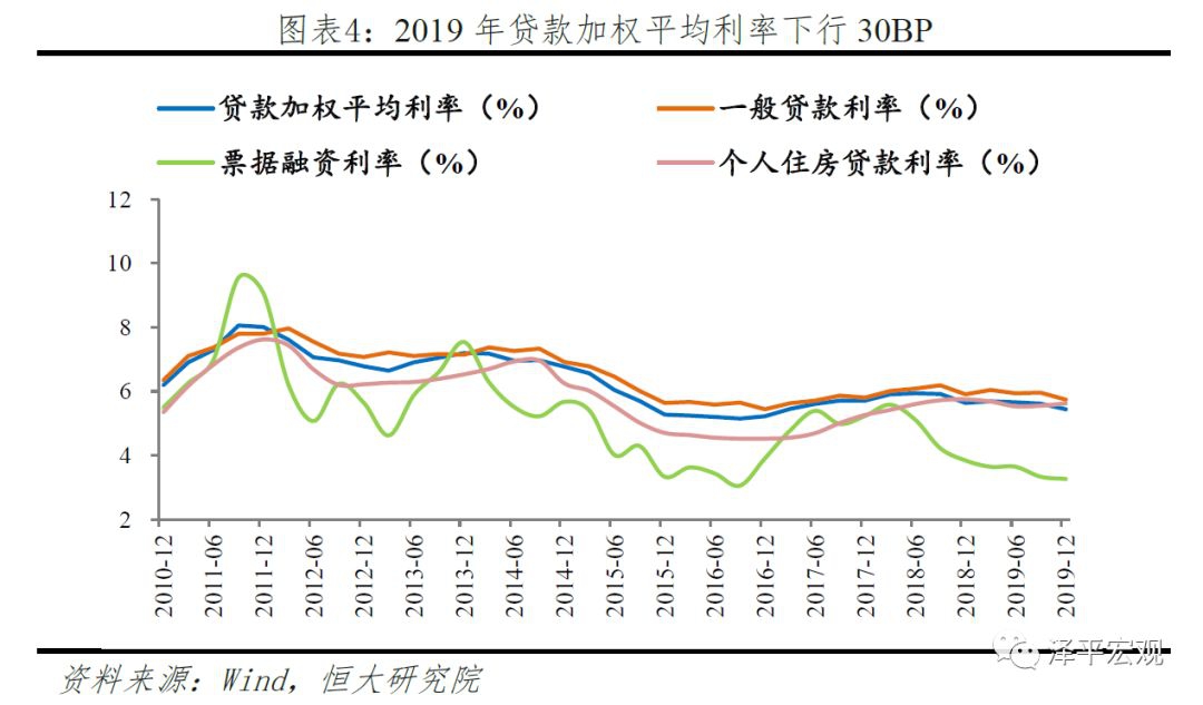 从价来看,政策利率、银行间利率和贷款利率中枢同步下行。1)政策利率方面,央行2020年2月分别下调7天、14天逆回购操作利率10BP至2.40%和2.55%,下调1年期MLF利率10BP至3.15%。2019年初,7天、14天逆回购及MLF利率分别维持在2.55%、2.7%、3.3%,并未进行下调。2)银行间市场方面,2月3日开市至今,DR007利率下行超过50BP至2.1%,当前维持低位震荡,1-2月利率中枢较2019年同期降幅超过20BP。3)贷款利率方面,2020年2月1年期、5年期LPR分别下降10BP、5BP至4.05%、4.75%,2020年初一般贷款利率较2019年下降30BP。