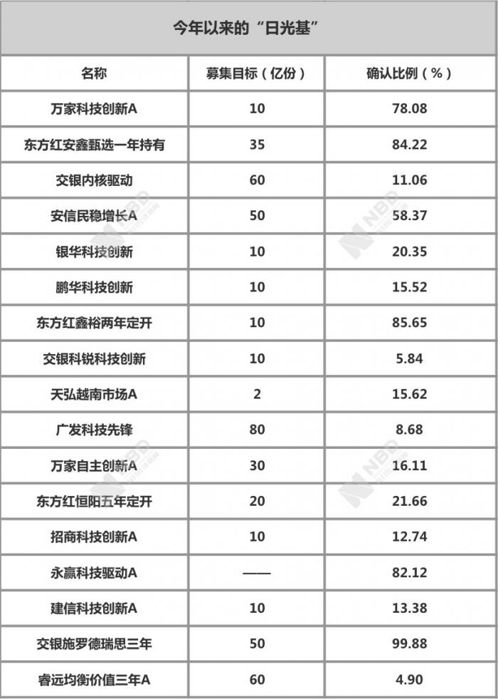 可见,老牌基金公司背靠强大的股东优势和品牌效应,新发产品的效率靠前,且在今年新发行的基金中,权益类产品数量占到所有新成立基金数量一半以上的不在少数。然而,权益产品常有,爆款却不常有,前述13只“日光基”有12只系权益类产品,分属于10家公募,其中数量最多的是交银施罗德基金(3只),市场最火爆的当属睿远基金(1只)。市场总体的认购意愿依旧是被个别的明星机构或个人带着节奏走,而过往业绩和投资风格当属投资人择基的判断依据。