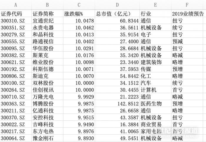 据21资本、21世纪经济报道记者梳理,2月26日创业板18只涨停个股包括:宜通世纪、永贵电器、和晶科技、路通视信、华伍股份、斯莱克、维业股份、科斯伍德、斯迪克、双林股份、佳创视讯、万隆光电、亿通科技、博腾股份、安控科技、吉峰科技、东方电热、豫金刚石。
