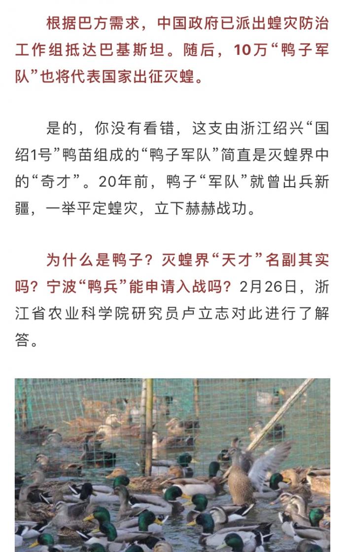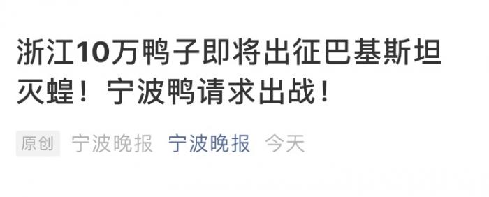 浙江10万鸭子即将出征巴基斯坦灭蝗?官方回应来了…