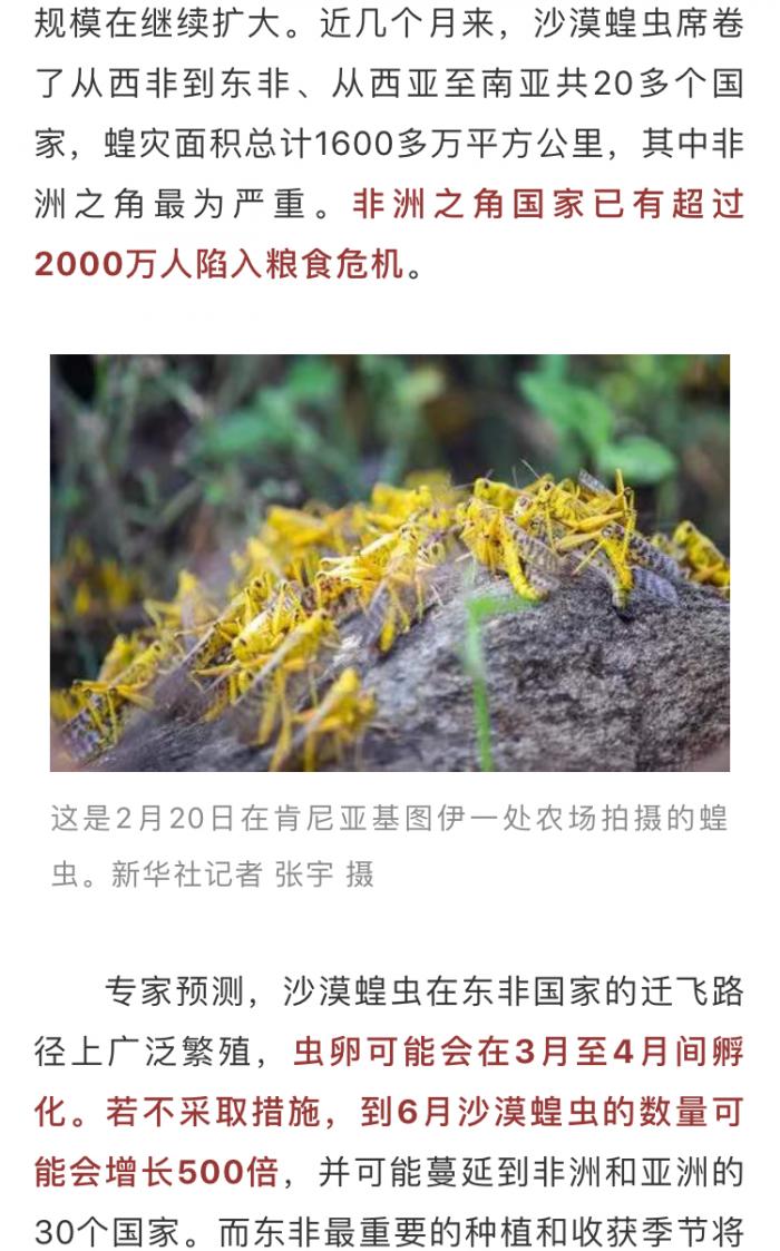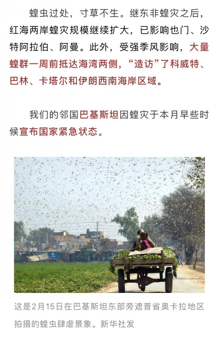 2月27日据宁波晚报报道,根据巴方需求,中国政府已派出蝗灾防治工作组抵达巴基斯坦。随后,10万“鸭子军队”也将代表国家出征灭蝗。