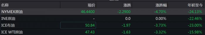 当晚,NYMEX原油期货跌幅一度超过5%,同期ICE原油期货也出现了超过4%的下跌。至此,包括国内INE原油期货在内的三大原油期货品种,年内累计跌幅均已超过22%。