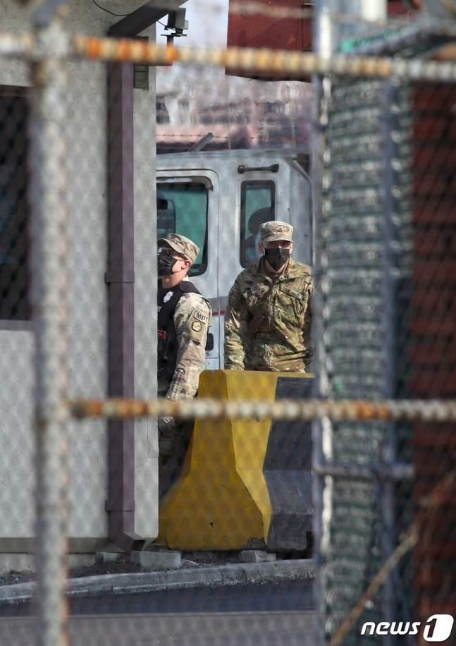 韩国大邱一处美军基地,军人戴口罩执勤(news 1)