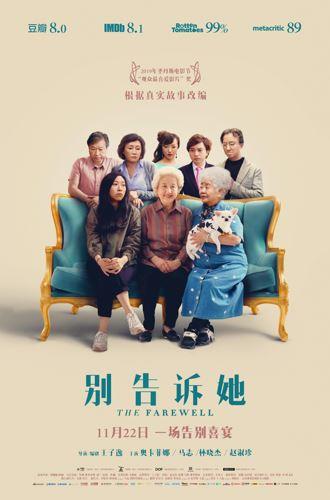 奶奶肺癌晚期,分居在纽约、长春和日本某城市的家人决定对其隐瞒病情,以举办一场婚礼的名义实现家人最后一次团聚的愿望,是为“The Farewell”(“告别”),中文片名“别告诉她”。这部获得美国金球奖喜剧类最佳女主角奖的影片年初在国内上映后,只斩获400万人民币的票房,与其海外1900多万美元的票房及各大媒体众口一词的好评相比,令人感慨。