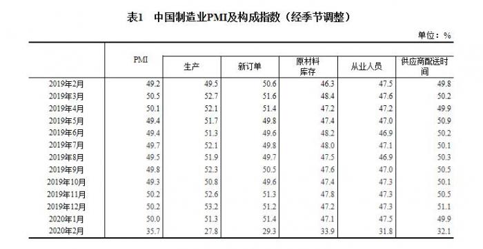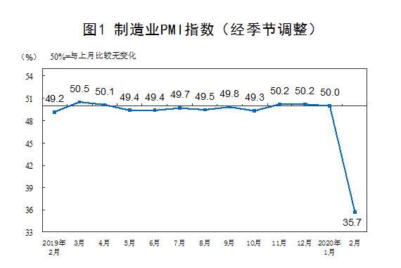 2月29日国家统计局服务业调查中心和中国物流与采购联合会发布的数字显示,2月份,受疫情影响,中国制造业采购经理指数(PMI)为35.7%,比上月下降14.3个百分点,创下历史新低。