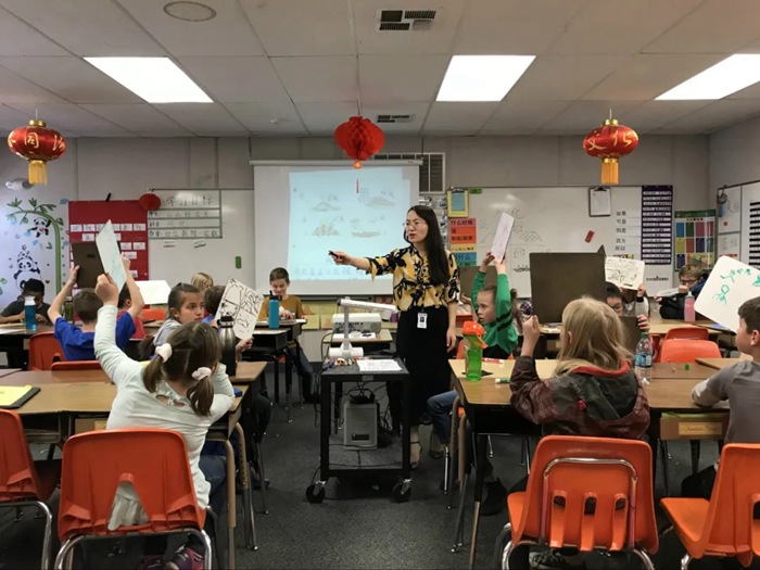 卡斯卡德小学现有6名中文沉浸式教育授课老师,郑亚敏就是其中之一,为孩子们提供全中文教学环境。