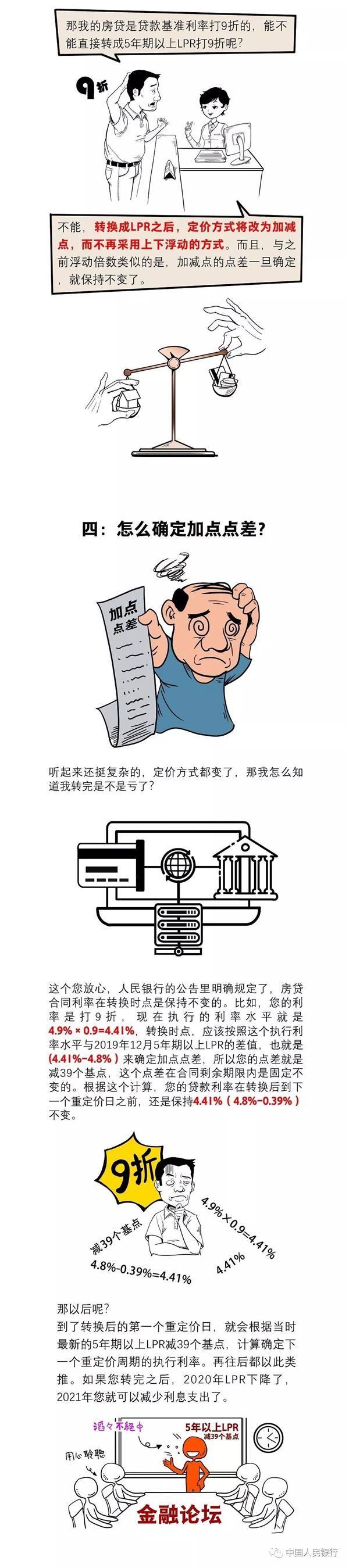 选择二,“LPR+加点”浮动利率。LPR是贷款市场报价利率,是央行2019年新推出的机制,LPR每月公布一次,可升可降。加点数值=原合同当前的执行利率水平-2019年12月发布的LPR,加点数值确定后固定不变。