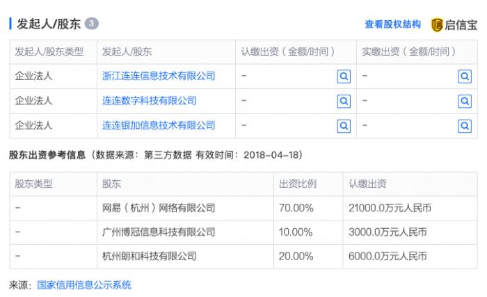 21世纪经济报道记者查阅启信宝发现,1月19日,上海网易小额贷款有限公司工商信息发生变更。股东网易(杭州)网络有限公司、广州博冠信息科技有限公司、杭州朗和科技有限公司均退出,其中,网易(杭州)网络有限公司持有70%股份;变更为连连数字科技有限公司、连连银加信息技术有限公司、浙江连连信息技术有限公司,穿透以后,实际控制人是连连数字科技有限公司。