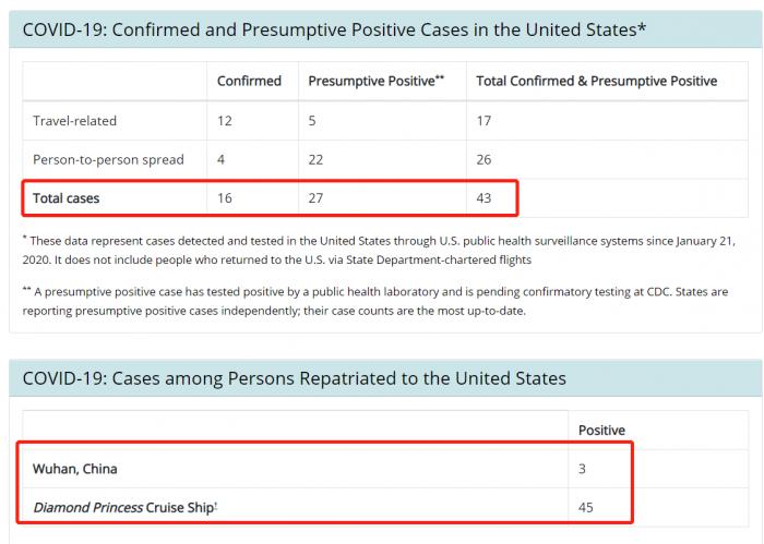 根据美国CDC公布的最新数据,截至3月2日,美国累计确诊病例达到91例,其中包括43例美国本土发现病例,45例钻石公主号撤侨人员,3例武汉撤侨人员。