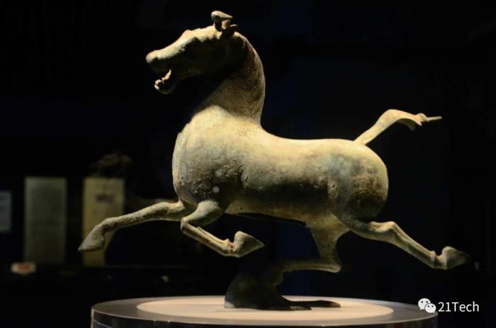 由于线上参观最大限度降低了对文物的损害,很多国宝真品都能无压力地展示在千万观众面前,甘肃省博物馆特意拿出了此前极少亮相的铜奔马“马踏飞燕”真品来讲解。