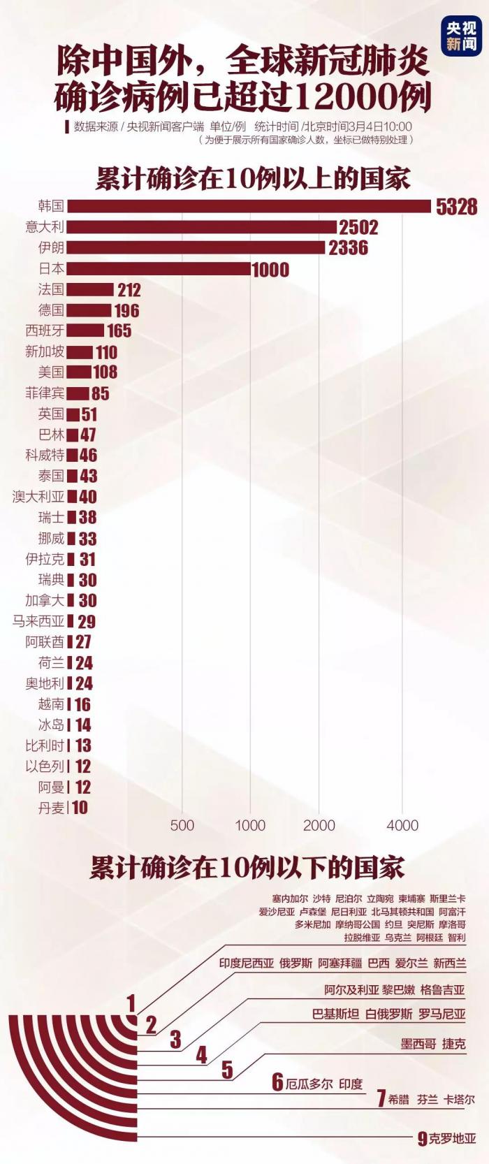 目前,新冠肺炎疫情仍在多国持续蔓延。中国境外新增新冠肺炎患者80%来自于韩国、伊朗和意大利三个国家,三个国家累计确诊病例已过万。安道尔、约旦、拉脱维亚等国出现首例新冠肺炎病例。