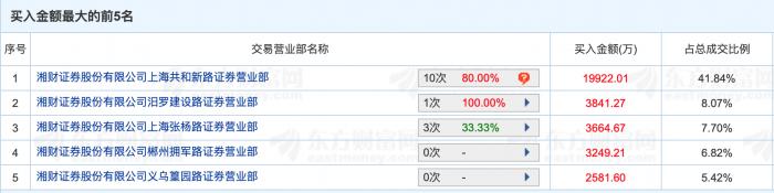 2月28日龙虎榜数据显示,买入金额排在前五位被湘财证券席位尽数包揽,排在第一位的湘财证券上海共和新路买入额达到1.99亿元。而早在2月4日,斯达半导上市首日,湘财证券另一席位武汉友谊大道营业部就已出现在买入榜单中。