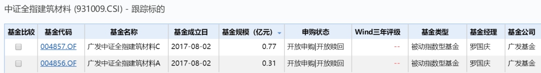 (2)中证全指建筑材料指数,跟踪标的有2个被动指基