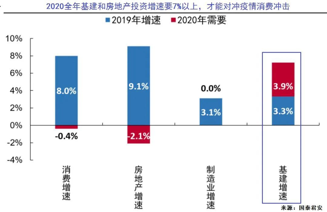 2020年全年基建和房地产投资增速要达到7%以上,才能对冲疫情带来的消费冲击。