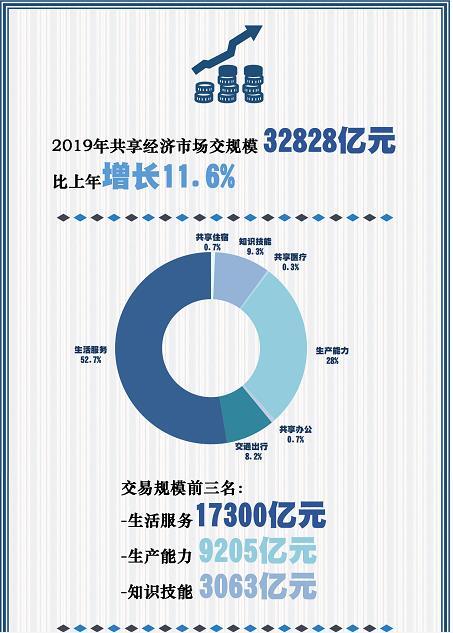这是自2016年首次发布以来的第五份年度报告。报告认为,2019年是中国共享经济深度调整的一年。受到国际国内宏观经济下行压力加大等多种因素影响,共享经济市场交易规模增速显著放缓,2019年共享经济市场交易额为32828亿元,比上年增长11.6%。而2018年,中国共享经济交易规模为29420亿元,同比增速高达41.6%。