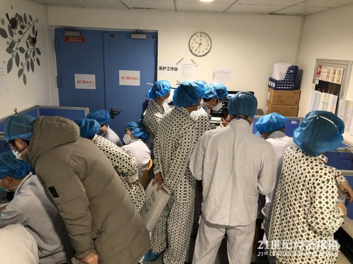 第二天一早医疗队接到通知,第二例患者即将于中午到达。詹庆元主任在早交班时对病房工作进行了整体安排,为每一位危重患者制定了详尽的治疗方案,同时再三强调了病房内感控的具体要求。