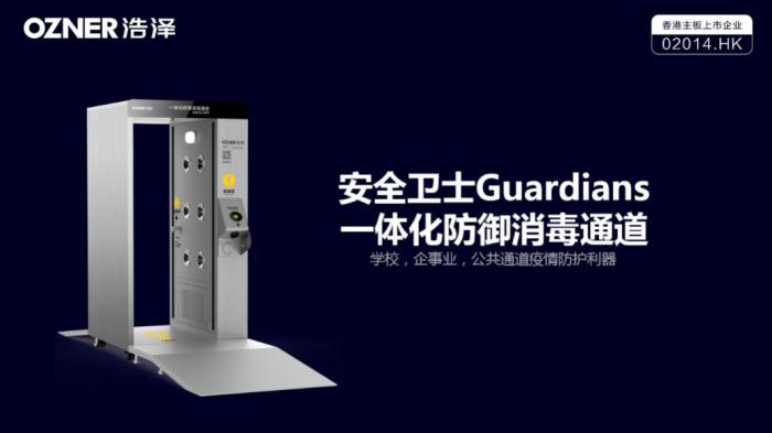 在几款多场景解决方案中,浩泽安全卫士Guardians一体化防御消毒通道受到了特别的关注。这款一体化防御消毒通道不仅可以在疫情期间节省大量人力、物力资源用于体温排查和防疫消毒,更可以在疫情过后广泛应用在大型公共场合、中大型企业、学校、政府机关、企事业单位中,对出入人员进行高效、安全地筛查。通道全程分为测温区、全身消毒区和洗手消毒区。在人员进入后首先利用红外技术集体测温,排除潜在危险;其次利用臭氧技术进行360°无死角杀菌,保证进出人员净化效果;然后进行非接触式洗手,最大限度避免交叉感染。