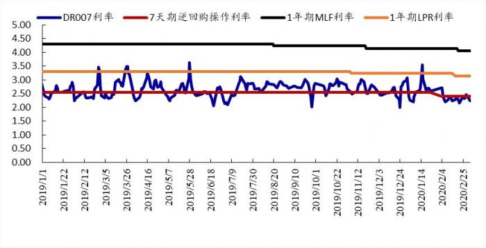 美联储引领世界范围内的财政与货币扩张无疑为中国后续宽松政策打开了更大空间,预计中国宏观政策将在以我为主的前提下,继续宽松以对冲疫情对经济的影响。目前,疫情防控与稳定经济社会发展的突出压力已经成为宏观政策逆周期调节的现实动力。疫情发生以来,央行已经加大了逆周期调节力度,春节后创纪录开展逆回购操作投放流动性的同时调降利率,公开市场操作量增价降,成为突发形势下货币政策实施应急干预、稳定经济金融的标志。上月DR007的均值水平为2.17%,较央行逆回购利率低20个基点以上,表明在节后现金回笼等因素支持下,流动性仍旧维持合理充裕,也表明市场对利率中枢水平继续下移存在预期。公开市场操作利率与贷款市场报价利率(LPR)的下降,进一步反映政策利率在引导市场整体利率水平下降中的基础性作用。